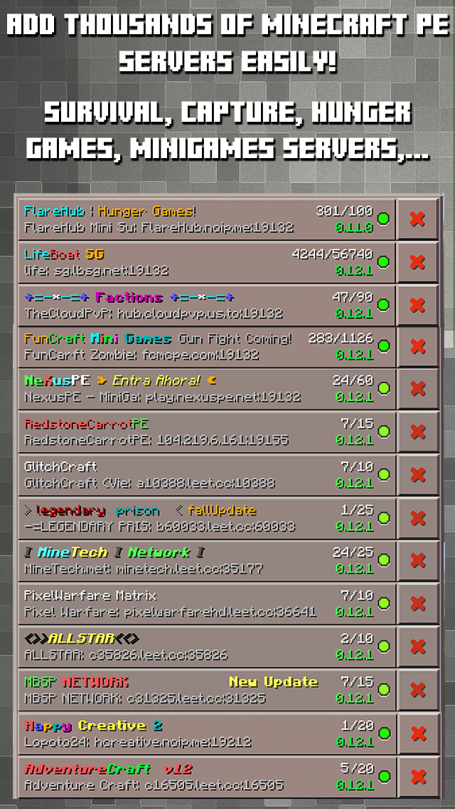 Multiplayer Servers for Minecraft PE & PC w Mods